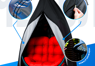 Чехол 200х308 для 2х местного кресла-кокон 230х200 с молнией черный + серебристый